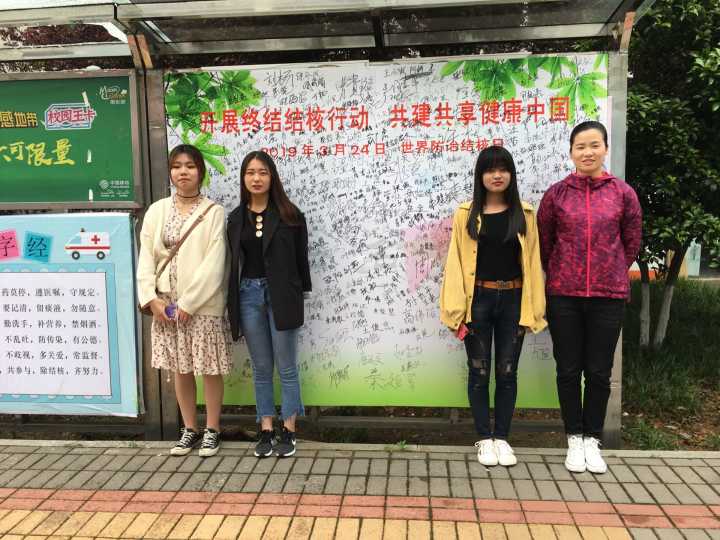3月26日中午,英语师范1805班组织部分学生在一食堂对面“防治结核病宣传栏”举行签名活动,以实际行动参与终结结核行动。