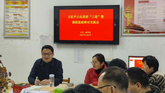 为进一步推动习近平文化思想进课堂、进教材、进头脑,将其更好地与大学英语课程思政深度融合,12月3日下午,外国语言与国际传播学院大学英语第一教研室全体教师齐聚一堂,举行习近平文化思想“三进”暨课程思政研讨交流会,会议由教研室主任熊礼伟主持。