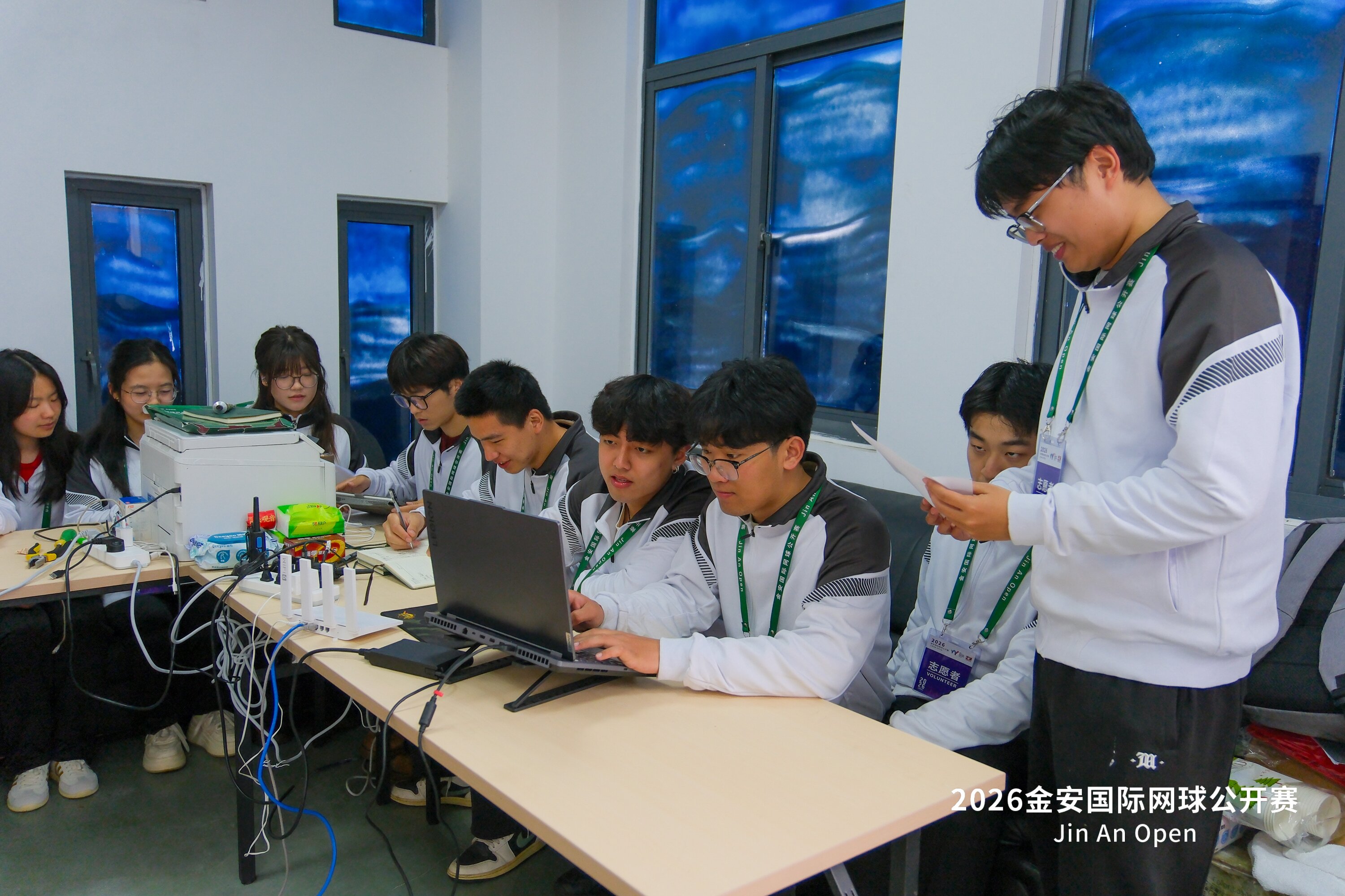 赛事期间,15名志愿者根据工作安排,分别在酒店服务处、球员服务处、场地服务处、球场播音台等岗位开展服务。酒店服务处志愿者主要负责外籍球员接机引导、协助办理入住等后勤保障工作;球员服务处志愿者贴心为国外参赛运动员解决各类生活难题,完成签到登记、行程约车、训练场地预约等事宜;场地服务处志愿者全力做好赛场的物资搬运与回收、赛场布置调整、现场秩序维护等工作,时刻关注赛场动态保障赛事有效运转;球场播音台志愿者凭借扎实的语言专业功底,精准完成赛事的英文播报,为赛事营造专业有序的现场氛围。