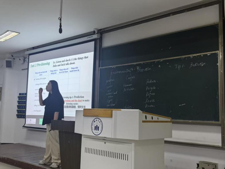 教学过程中,李晓毓凭借扎实的专业功底和丰富的一线教学经验,生动展示了英语听力课堂的完整教学流程,从教学设计思路、教学环节设计,到课堂互动组织、听力重难点讲解,无不展现出成熟的教学技艺,呈现了一堂真实且极具深度和启发性的教学示范课。
