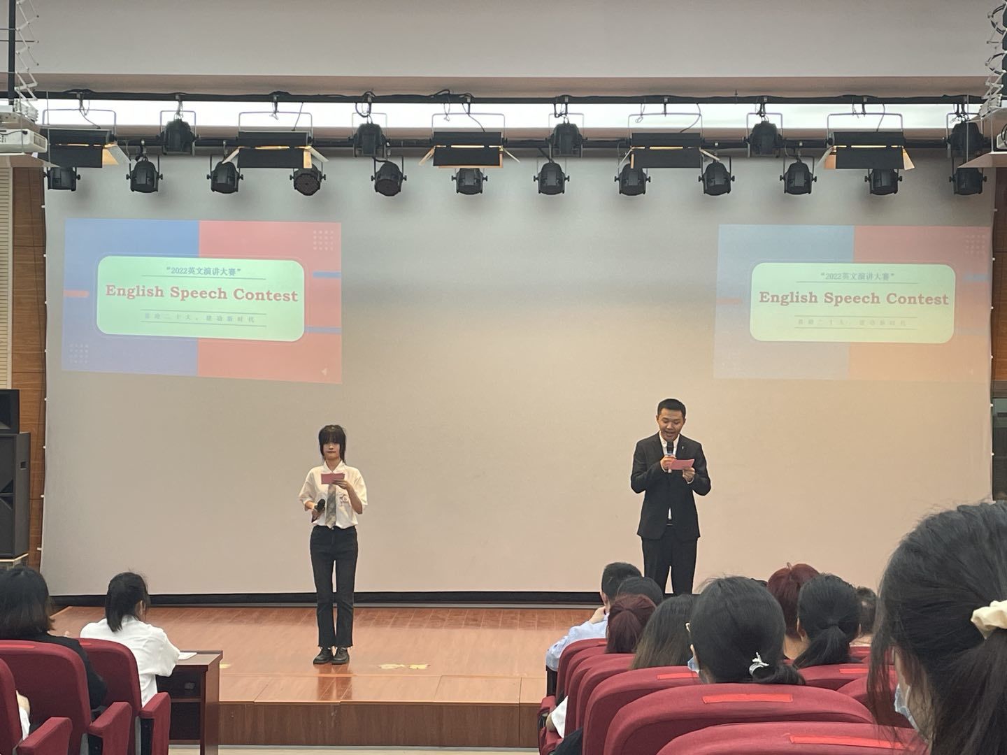 “喜迎二十大,建功新时代”主题英文演讲比赛分为“永远跟党走”、“诚信”、“学习习近平总书记在中国共产主义青年团100周年大会的讲话精神”三个选题方向,共分为上、下两个场次,上半场为专业组12名选手进行比赛,下半场为非专业组的5名选手比赛。